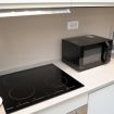 L’alloggio può ospitare fino a 4 posti letto, ed è composto da un luminoso soggiorno con con un ampio divano letto con materasso in memory da 17cm, un tavolo per pranzare e una moderna e ben attrezzata cucina a vista.