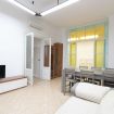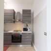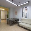 Zona pranzo con tavolo e divano e cucina attrezzata in condivisone.