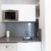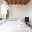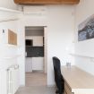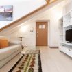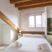Moderno bilocale mansardato, può ospitare fino a 2 persone. E composto da un soggiorno con divano, tv e un elegante tavolo. A fianco vi è un angolo cottura completamente attrezzato per preparare tutti i pasti.