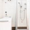 Vi è una camera da letto matrimoniale e due bagni con doccia e servizi igienici.