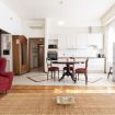 E' composto da un luminoso ed elegante soggiorno con divano , tv , tavolo per pranzare e cucina a vista completamente attrezzata