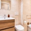 Il bagno è dotato di tutti i servizi igienici e di una doccia elegante.
