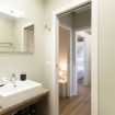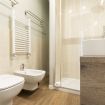 Infine vi è un moderno bagno dotato di una doccia e di tutti i servizi igienici .