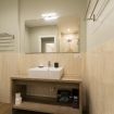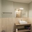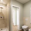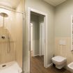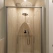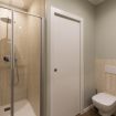 Infine vi è un moderno bagno dotato di una doccia e di tutti i servizi igienici .